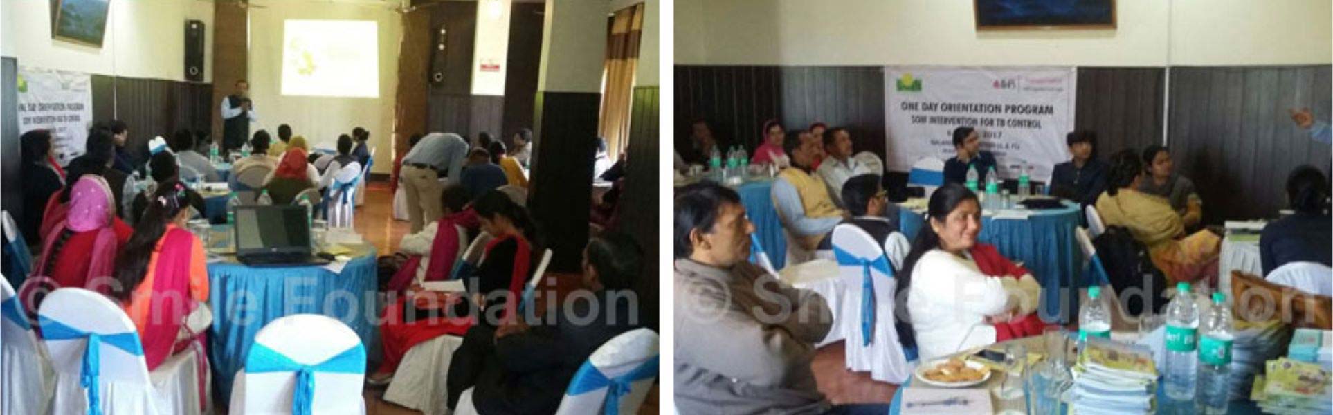 A workshop was organized for volunteers and PRIs on the 6th of March 2017at Hotel Sagar View in Bilaspur. The health department of Bilaspur, International Union against TB and Lung Disease and World Health Organization supported the health camp and oriented the volunteers on TB control. 50 people attended the workshop.