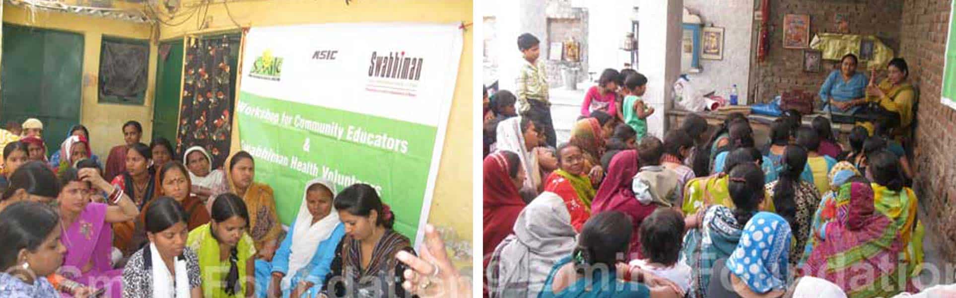 A three-day workshop on the issue of menstrual hygiene and safe menstrual practice was held by Swabhiman programme for its community health educators and health volunteers during March 16-21. Around 123 health educators and volunteers in the age group of 12- 42 years, from Swabhiman centres ‘Adhaar’ (Shashi Garden), ‘Sahyogita Samaj Vikas Sansthan’ (Chhattarpur), and ‘Health & Care Society’ (Indira Camp) actively participated in the activity, conducted by Dr. Uzma Bano.